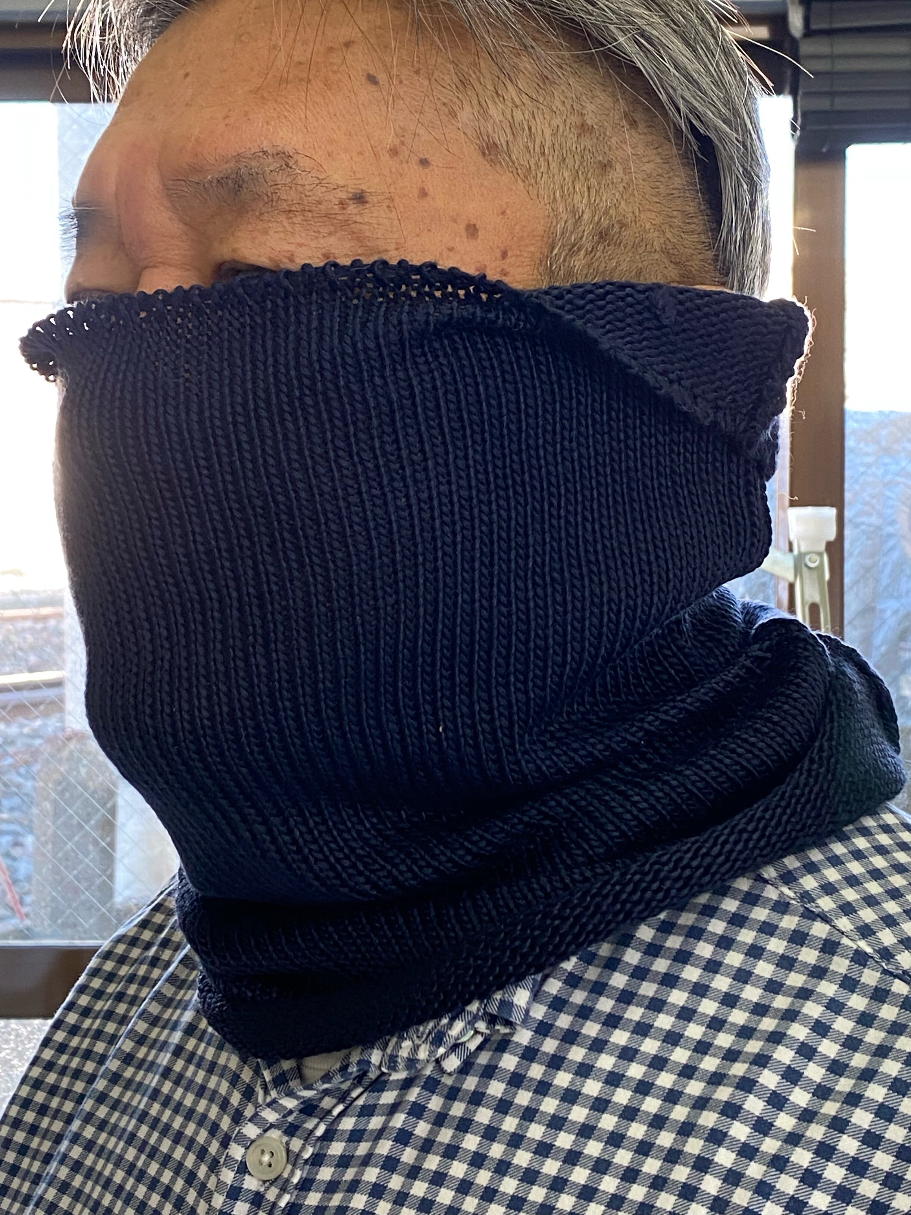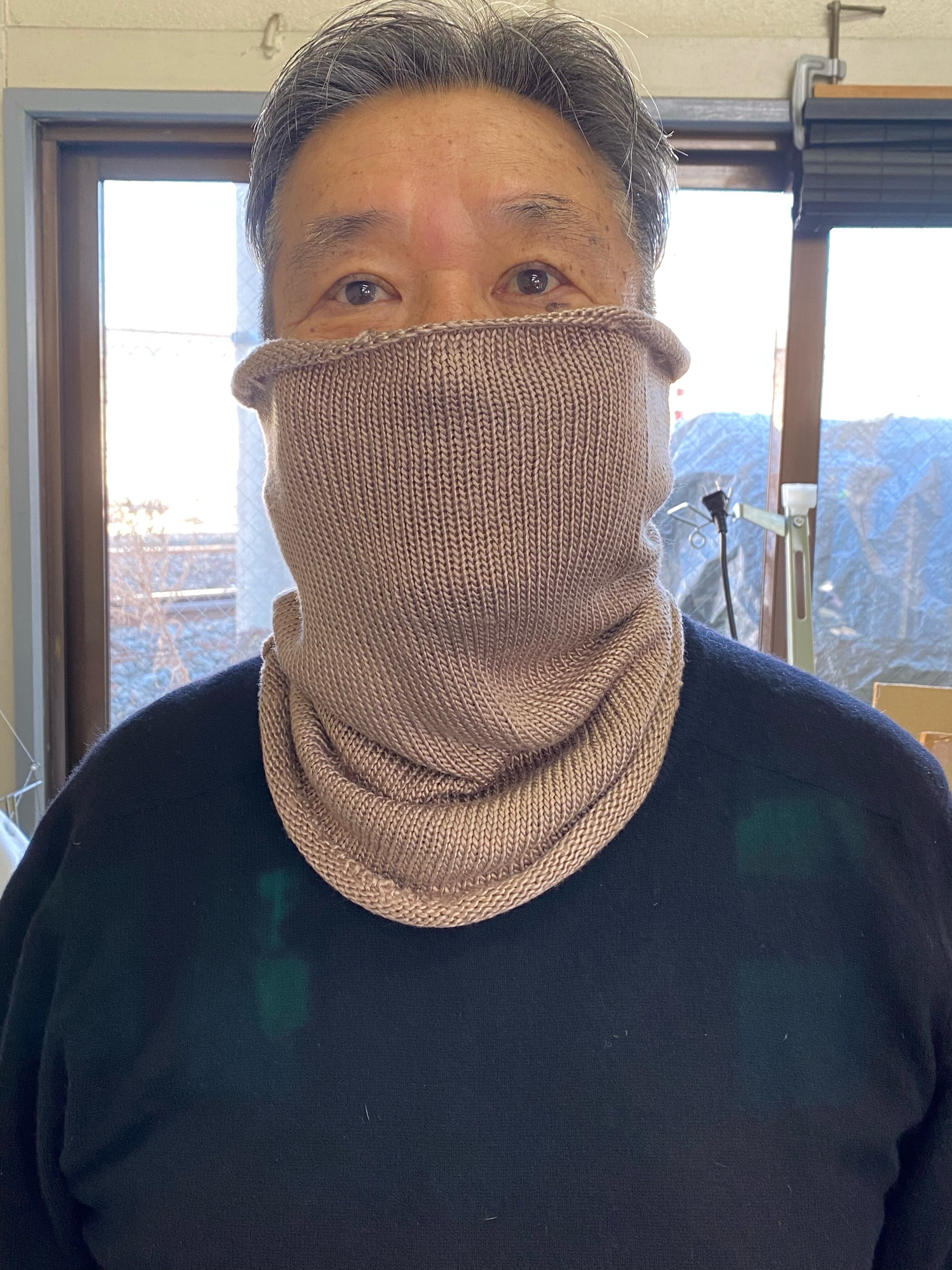 社内の熟練工が編みたて縫製をして作り上げたローゲージのニット ネックウォーマーです。